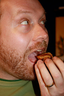 They sounded so easy to make that I had to try them myself. We used mini muffin pans and Tollhouse cookie dough. Mark unwrapped the mini Reese's cup.